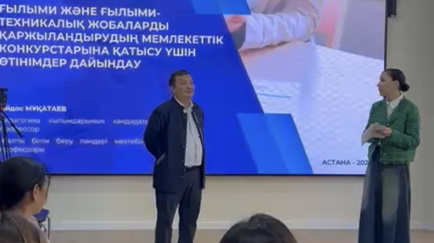 Семинар барысында ғылыми жобаларды басқару және гранттық қаржыландыру саласындағы сарапшы Айдос Ағдарбекұлы Мұқатаев ҚР Ғылым және жоғары білім министрлігінің ғылыми саясатындағы басым бағыттар, сондай-ақ гранттық жобаларды әзірлеу мен іске асыру жүйесінің ерекшеліктері жөнінде баяндама жасады.
